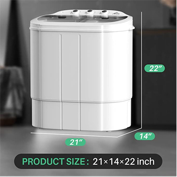 This product designed with twin tub, allowing you to wash and spin clothes at the same time.Our compact washing with lightweight only 9 pounds, suitable for dorms, apartments, condos, RV’s, camping trips or anywhere with limited space!