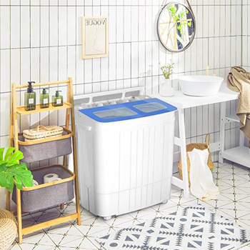 【Large Capacity and Powerful】: Mini lavadora, but large capacity. 8 lbs for washer and 7 lbs for spin tub, what’s more, the spin tub is made of stainless steel, for long term use. Also, our apartment washer with powerful motor, 280 W washing power and 160 spin power, built-in gravity drain, full free your hands
