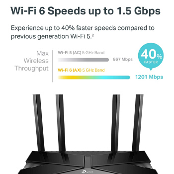 Next-gen Dual Band router - 300 Mbps on 2. 4 GHz (802. 11n) plus 1201 Mbps on 5 GHz (802. 11ax)