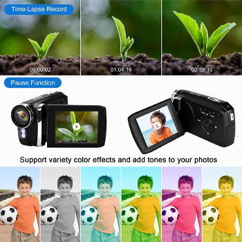 This kids camcorder equipped with 2.8"/270° flip screen, 8X digital zoom and built-in fill light, USB 2.0, TV output etc. This video camera for youtube support installation standard tripod at the bottom. Great for kids/ beginners/ studerns/ olders record their lovely moments.